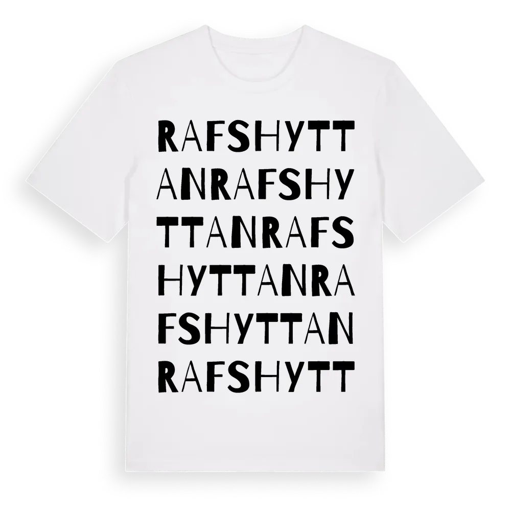 En ordlek byggd på Rafshyttans namn. Subtilt och klurig – ett motiv som bara de som verkligen känner platsen fullt ut förstår. Premium bomull, unisex – från Rafshyttan i Dalarnas län.