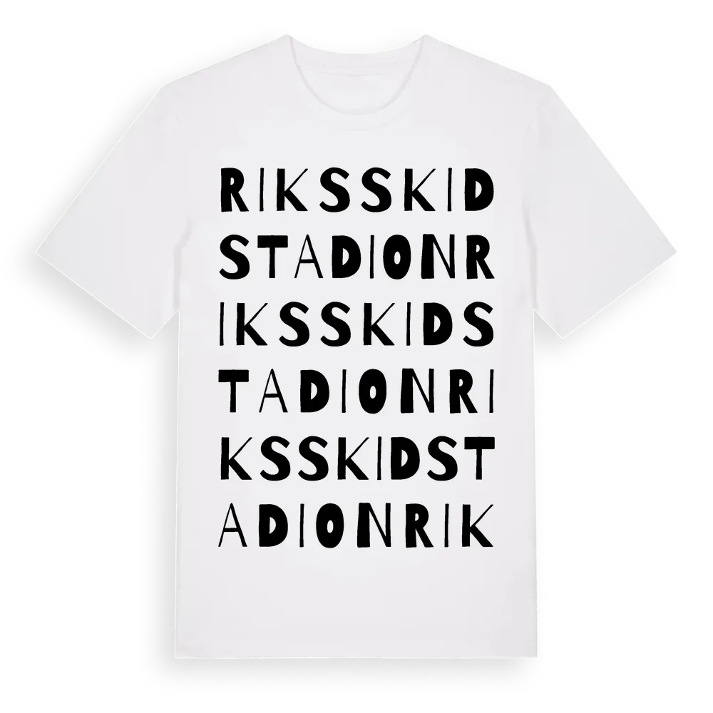 En ordlek byggd på Riksskidstadions namn. Subtilt och klurig – ett motiv som bara de som verkligen känner platsen fullt ut förstår. Premium bomull, unisex – från Riksskidstadion i Dalarnas län.