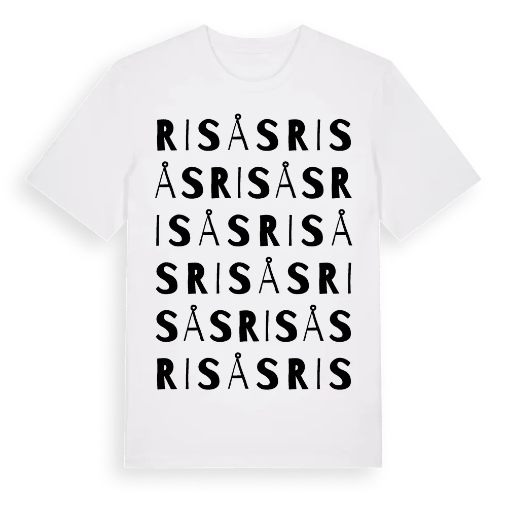 En ordlek byggd på Risåss namn. Subtilt och klurig – ett motiv som bara de som verkligen känner platsen fullt ut förstår. Premium bomull, unisex – från byn Risås i Dalarnas län.
