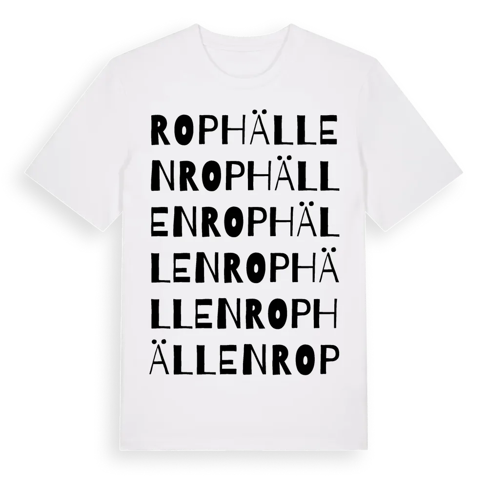 Rophällen ordlek t-shirt är inspirerad av Rophällen i Dalarnas län, Sverige. Tröjan är designad för dig som har en speciell koppling till platsen – oavsett om du bor här, har rötterna här eller bara älskar Rophällen.