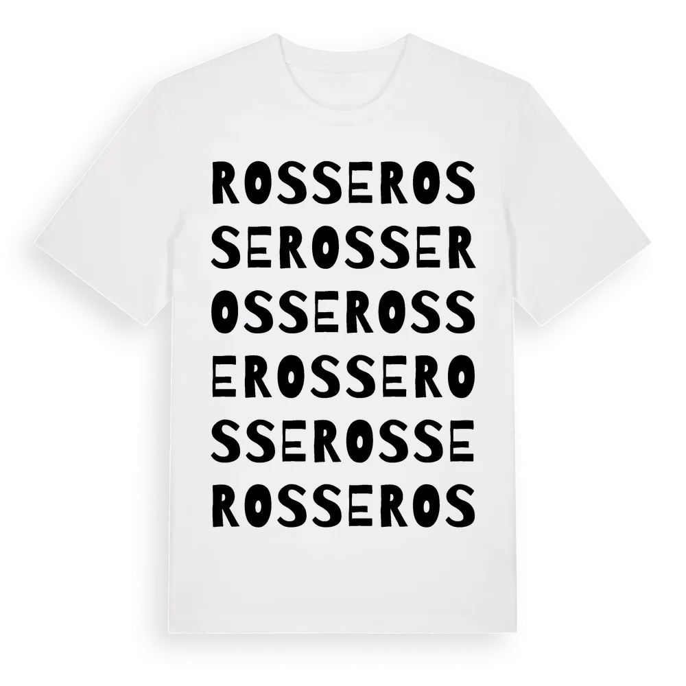 Rosse ordlek t-shirt är inspirerad av byn Rosse i Dalarnas län, Sverige. Tröjan är designad för dig som har en speciell koppling till platsen – oavsett om du bor här, har rötterna här eller bara älskar Rosse.