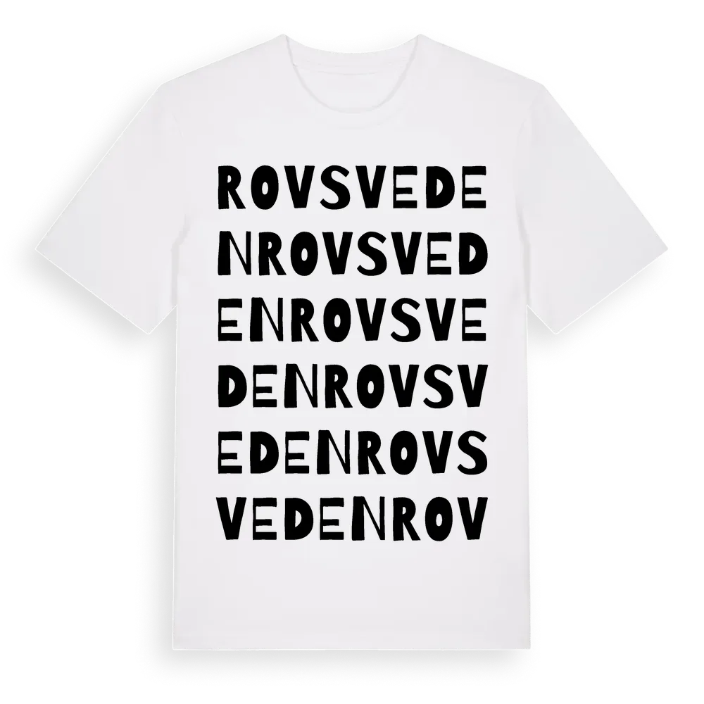Rovsveden ordlek t-shirt är inspirerad av Rovsveden i Dalarnas län, Sverige. Tröjan är designad för dig som har en speciell koppling till platsen – oavsett om du bor här, har rötterna här eller bara älskar Rovsveden.