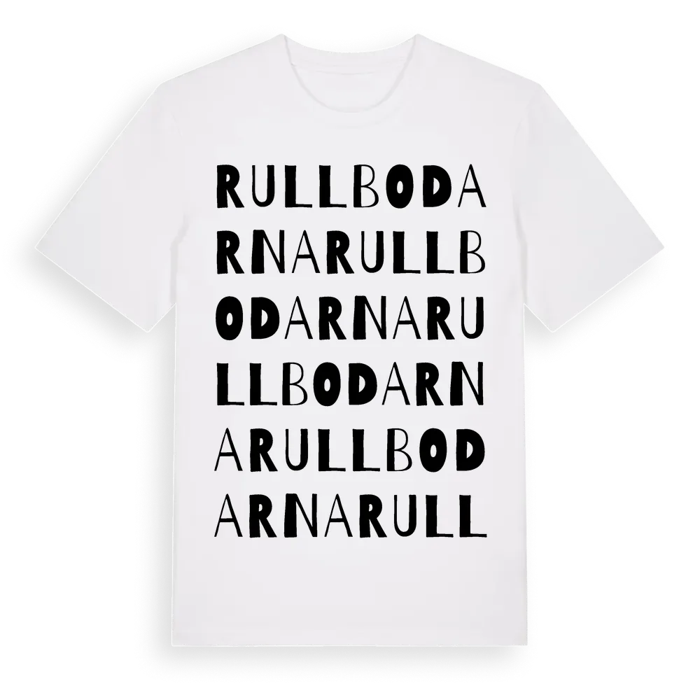 Rullbodarna ordlek t-shirt är inspirerad av byn Rullbodarna i Dalarnas län, Sverige. Tröjan är designad för dig som har en speciell koppling till platsen – oavsett om du bor här, har rötterna här eller bara älskar Rullbodarna.