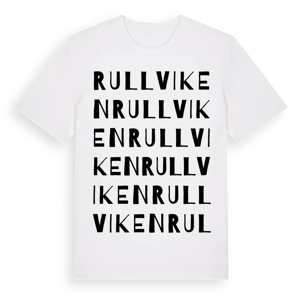 Rullviken ordlek t-shirt är inspirerad av Rullviken i Dalarnas län, Sverige. Tröjan är designad för dig som har en speciell koppling till platsen – oavsett om du bor här, har rötterna här eller bara älskar Rullviken.