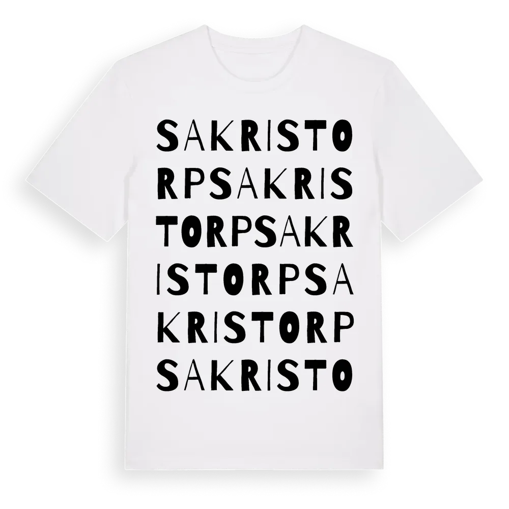 Sakristorp ordlek t-shirt är inspirerad av byn Sakristorp i Dalarnas län, Sverige. Tröjan är designad för dig som har en speciell koppling till platsen – oavsett om du bor här, har rötterna här eller bara älskar Sakristorp.