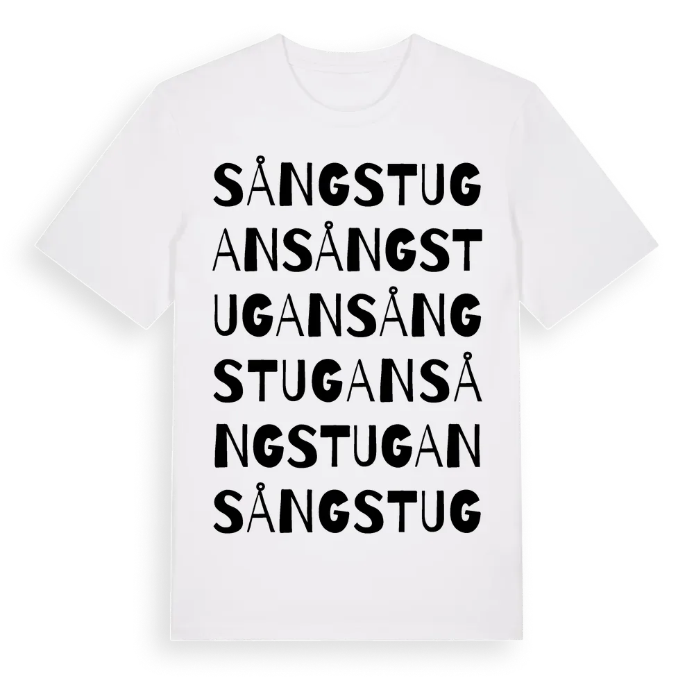Sångstugan ordlek t-shirt är inspirerad av Sångstugan i Dalarnas län, Sverige. Tröjan är designad för dig som har en speciell koppling till platsen – oavsett om du bor här, har rötterna här eller bara älskar Sångstugan.