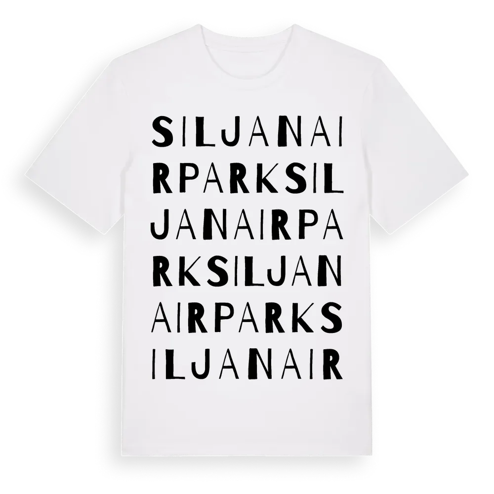 Siljan Airpark ordlek t-shirt är inspirerad av byn Siljan Airpark i Dalarnas län, Sverige. Tröjan är designad för dig som har en speciell koppling till platsen – oavsett om du bor här, har rötterna här eller bara älskar Siljan Airpark.