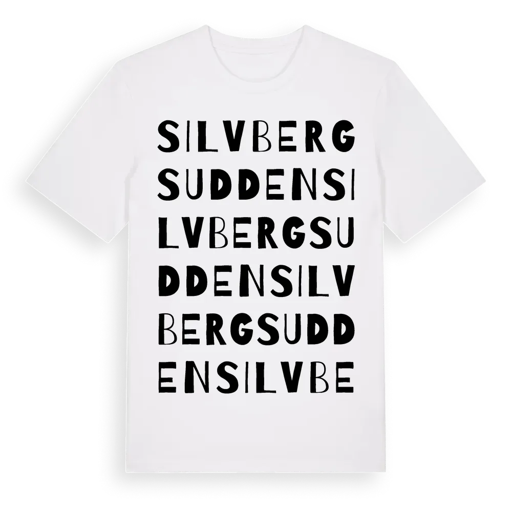Silvbergsudden ordlek t-shirt är inspirerad av Silvbergsudden i Dalarnas län, Sverige. Tröjan är designad för dig som har en speciell koppling till platsen – oavsett om du bor här, har rötterna här eller bara älskar Silvbergsudden.