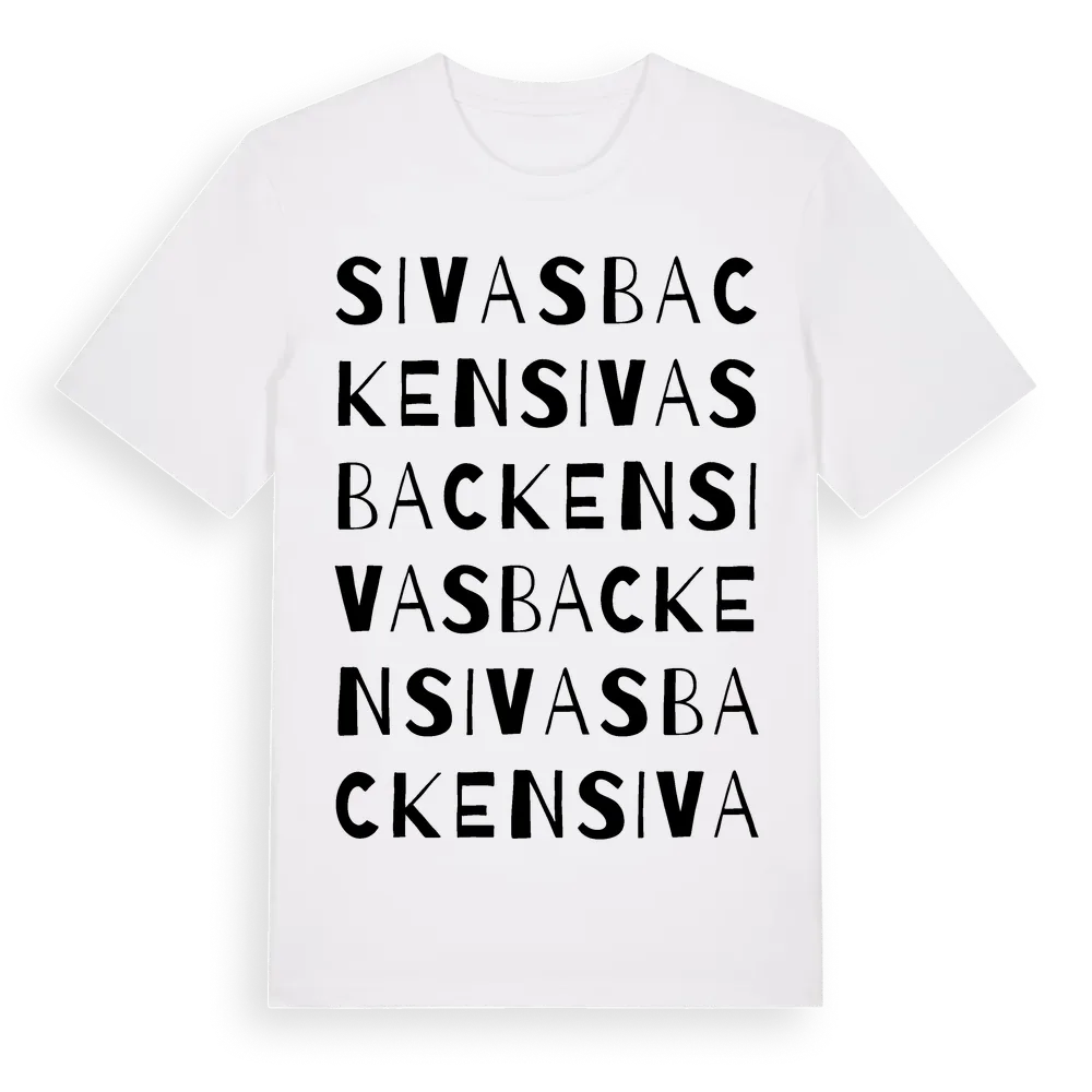 En ordlek byggd på Sivasbackens namn. Subtilt och klurig – ett motiv som bara de som verkligen känner platsen fullt ut förstår. Premium bomull, unisex – från byn Sivasbacken i Dalarnas län.