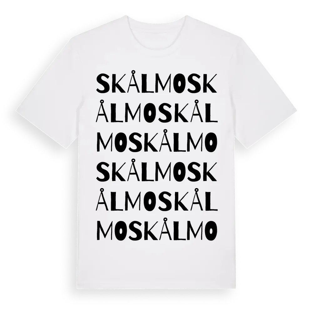 Skålmo ordlek t-shirt är inspirerad av byn Skålmo i Dalarnas län, Sverige. Tröjan är designad för dig som har en speciell koppling till platsen – oavsett om du bor här, har rötterna här eller bara älskar Skålmo.