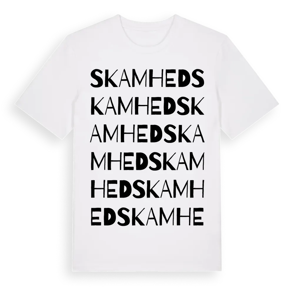 Skamhed ordlek t-shirt är inspirerad av byn Skamhed i Dalarnas län, Sverige. Tröjan är designad för dig som har en speciell koppling till platsen – oavsett om du bor här, har rötterna här eller bara älskar Skamhed.