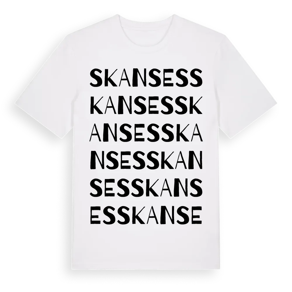 Skanses ordlek t-shirt är inspirerad av Skanses i Dalarnas län, Sverige. Tröjan är designad för dig som har en speciell koppling till platsen – oavsett om du bor här, har rötterna här eller bara älskar Skanses.