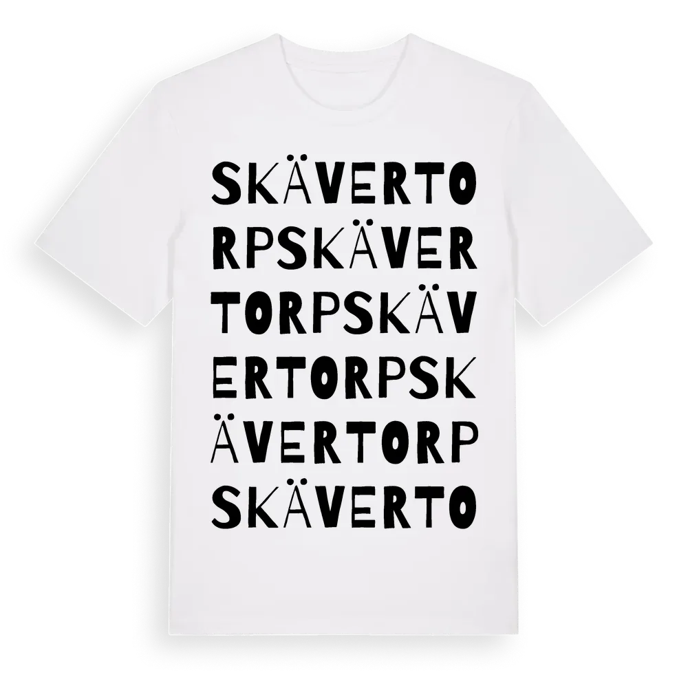 Skävertorp ordlek t-shirt är inspirerad av Skävertorp i Dalarnas län, Sverige. Tröjan är designad för dig som har en speciell koppling till platsen – oavsett om du bor här, har rötterna här eller bara älskar Skävertorp.