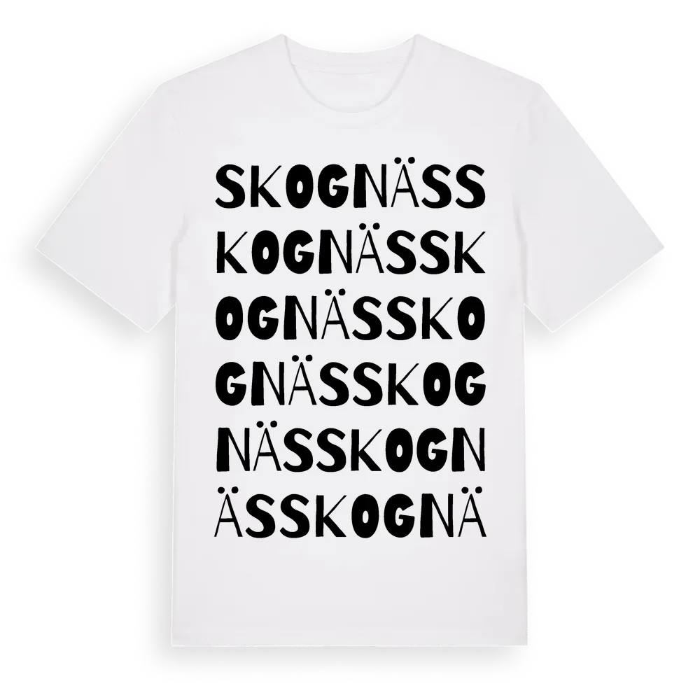 Skognäs ordlek t-shirt är inspirerad av Skognäs i Dalarnas län, Sverige. Tröjan är designad för dig som har en speciell koppling till platsen – oavsett om du bor här, har rötterna här eller bara älskar Skognäs.