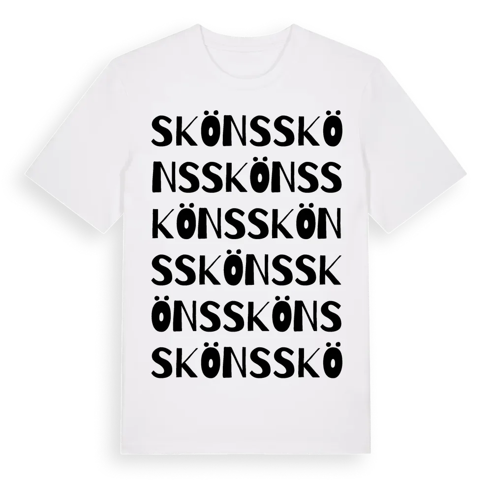 Sköns ordlek t-shirt är inspirerad av Sköns i Dalarnas län, Sverige. Tröjan är designad för dig som har en speciell koppling till platsen – oavsett om du bor här, har rötterna här eller bara älskar Sköns.