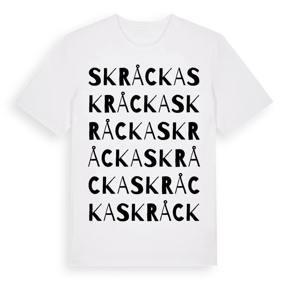 Skråcka ordlek t-shirt är inspirerad av Skråcka i Dalarnas län, Sverige. Tröjan är designad för dig som har en speciell koppling till platsen – oavsett om du bor här, har rötterna här eller bara älskar Skråcka.
