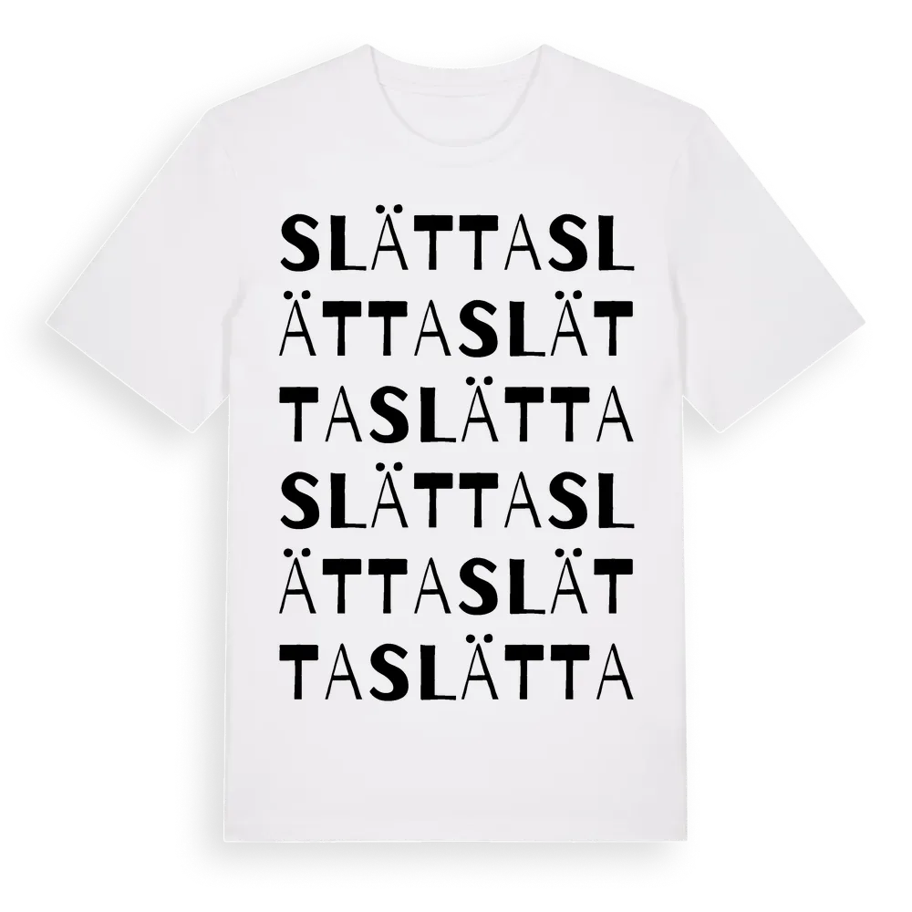 Slätta ordlek t-shirt är inspirerad av stadsdelen Slätta i Dalarnas län, Sverige. Tröjan är designad för dig som har en speciell koppling till platsen – oavsett om du bor här, har rötterna här eller bara älskar Slätta.