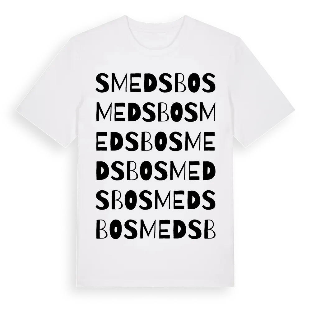 Smedsbo ordlek t-shirt är inspirerad av Smedsbo i Dalarnas län, Sverige. Tröjan är designad för dig som har en speciell koppling till platsen – oavsett om du bor här, har rötterna här eller bara älskar Smedsbo.