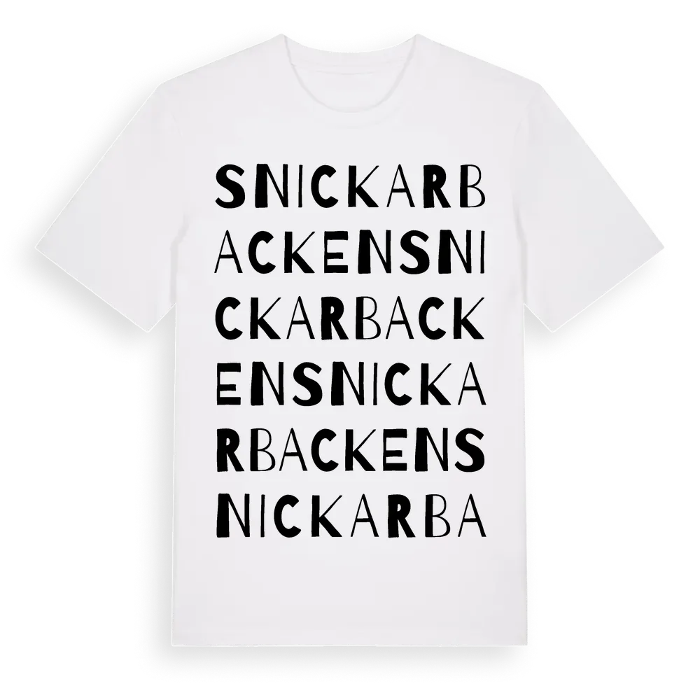 Snickarbacken ordlek t-shirt är inspirerad av Snickarbacken i Dalarnas län, Sverige. Tröjan är designad för dig som har en speciell koppling till platsen – oavsett om du bor här, har rötterna här eller bara älskar Snickarbacken.
