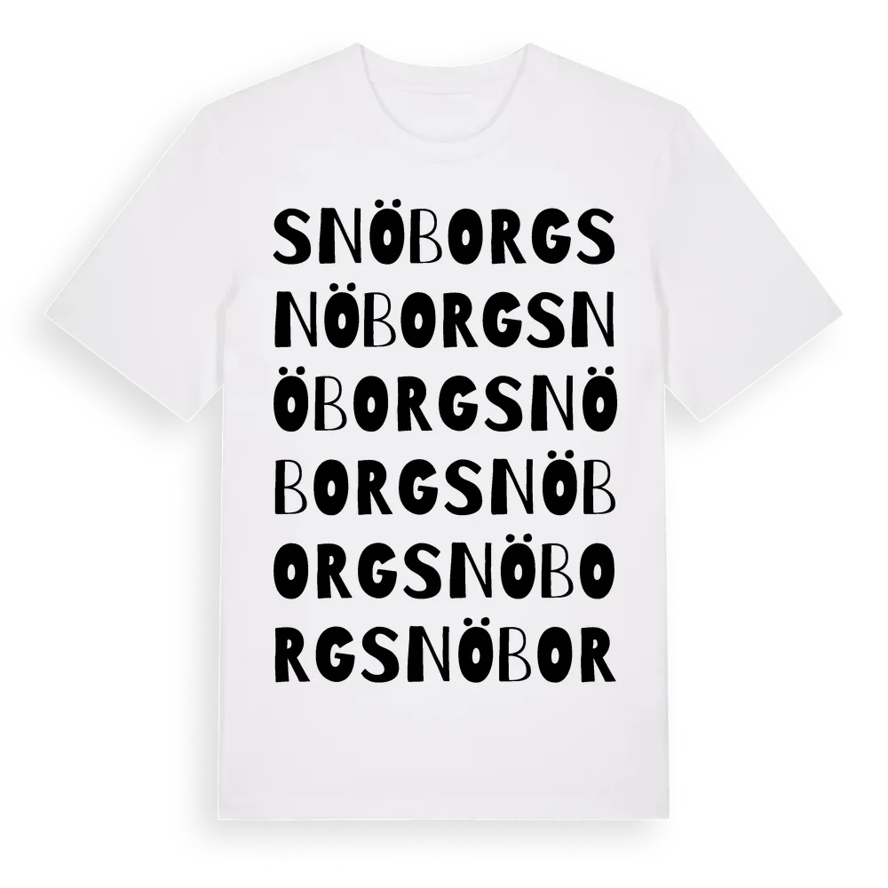 Snöborg ordlek t-shirt är inspirerad av byn Snöborg i Dalarnas län, Sverige. Tröjan är designad för dig som har en speciell koppling till platsen – oavsett om du bor här, har rötterna här eller bara älskar Snöborg.