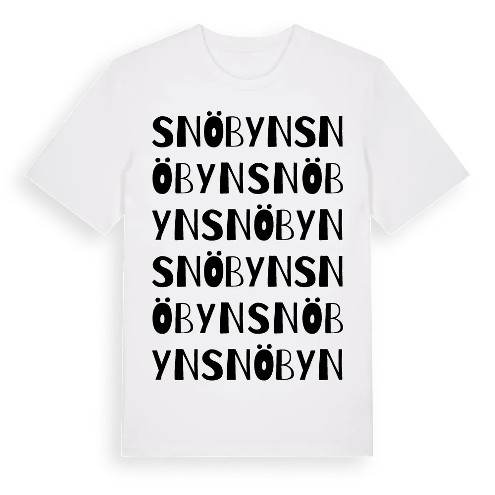 En ordlek byggd på Snöbyns namn. Subtilt och klurig – ett motiv som bara de som verkligen känner platsen fullt ut förstår. Premium bomull, unisex – från byn Snöbyn i Dalarnas län.
