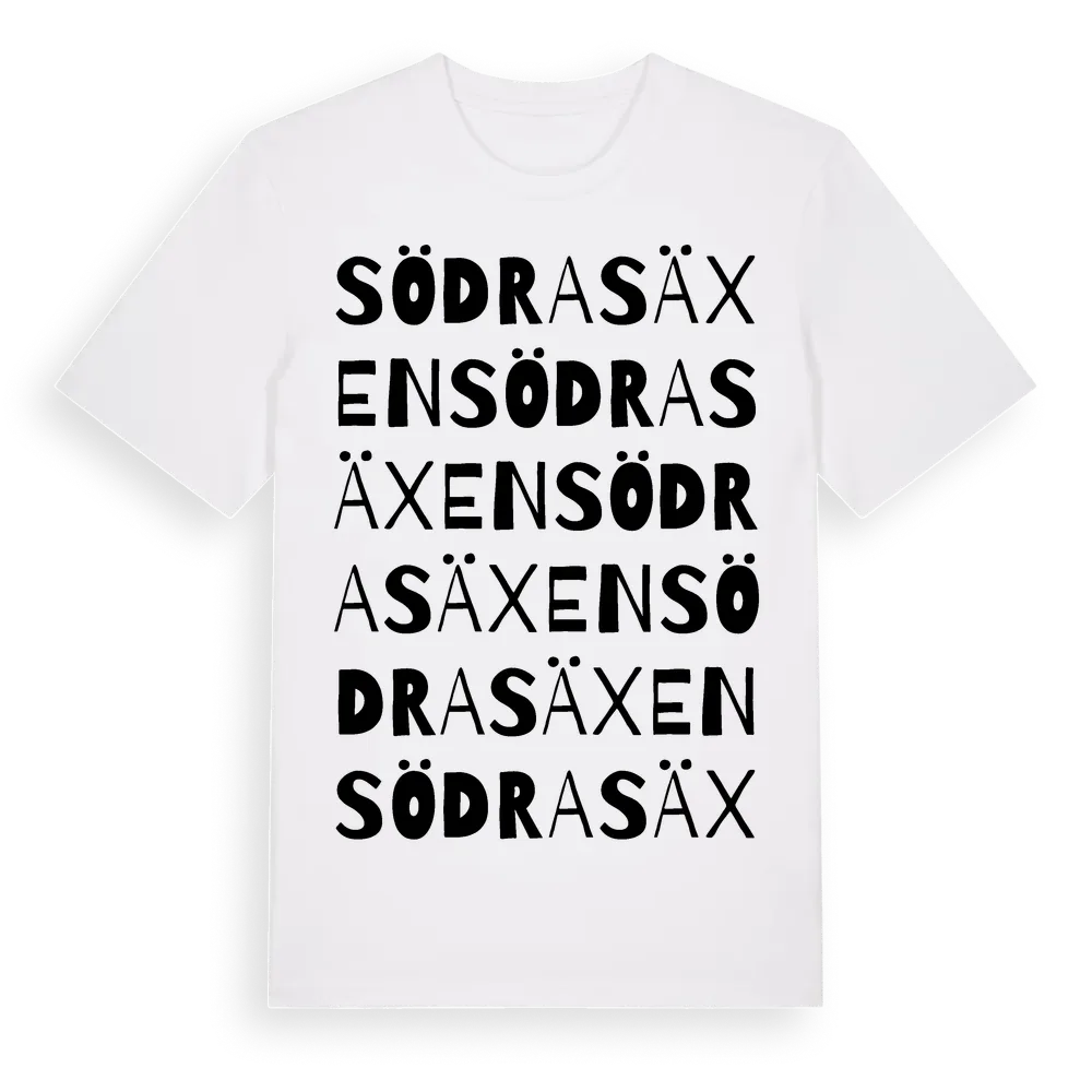 Södra Säxen ordlek t-shirt är inspirerad av Södra Säxen i Dalarnas län, Sverige. Tröjan är designad för dig som har en speciell koppling till platsen – oavsett om du bor här, har rötterna här eller bara älskar Södra Säxen.