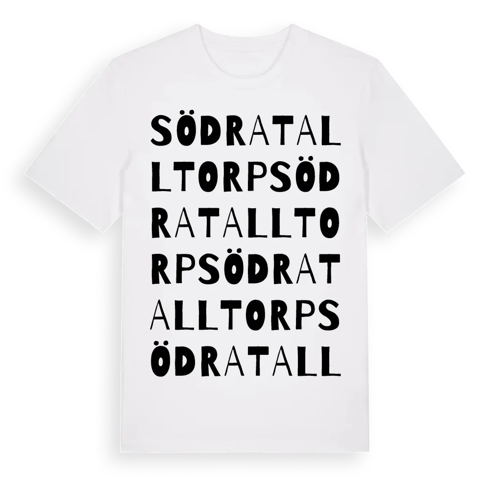 Södra Talltorp ordlek t-shirt är inspirerad av Södra Talltorp i Dalarnas län, Sverige. Tröjan är designad för dig som har en speciell koppling till platsen – oavsett om du bor här, har rötterna här eller bara älskar Södra Talltorp.