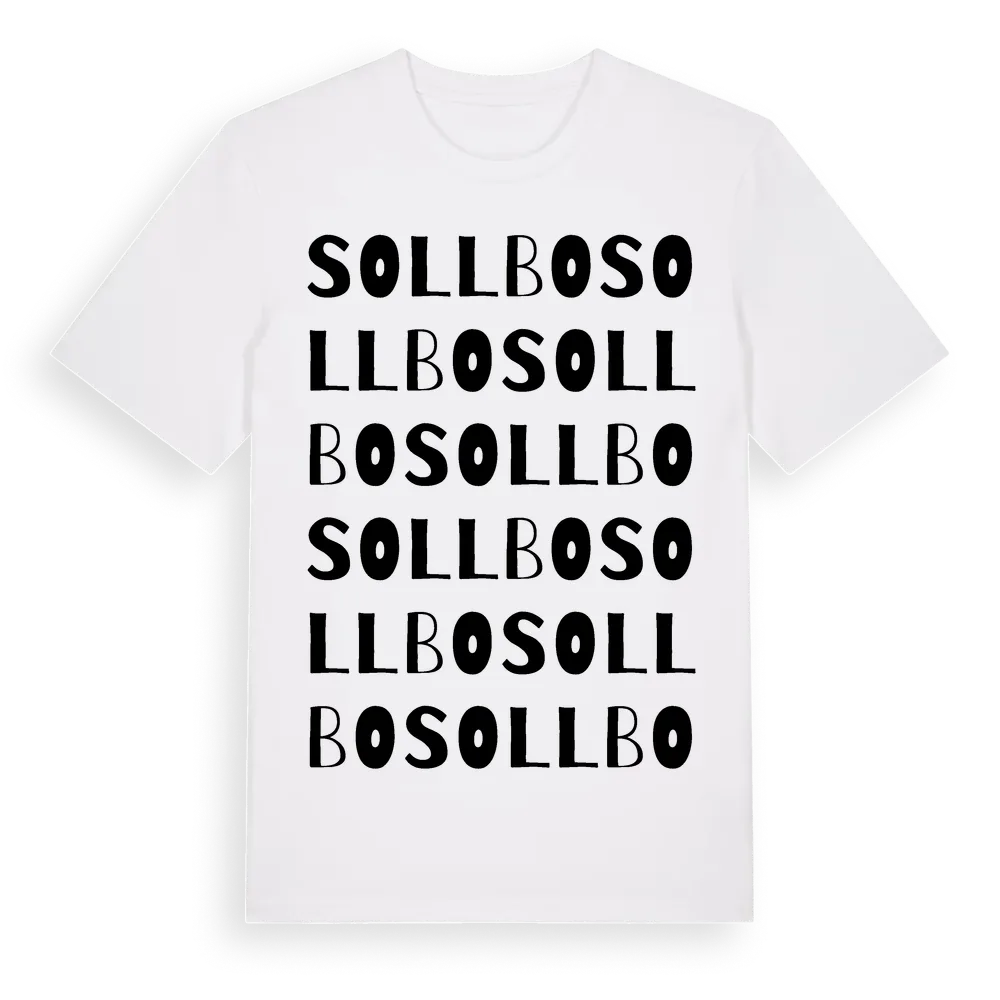 Sollbo ordlek t-shirt är inspirerad av byn Sollbo i Dalarnas län, Sverige. Tröjan är designad för dig som har en speciell koppling till platsen – oavsett om du bor här, har rötterna här eller bara älskar Sollbo.
