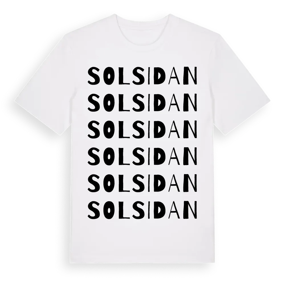 Solsidan ordlek t-shirt är inspirerad av stadsdelen Solsidan i Dalarnas län, Sverige. Tröjan är designad för dig som har en speciell koppling till platsen – oavsett om du bor här, har rötterna här eller bara älskar Solsidan.