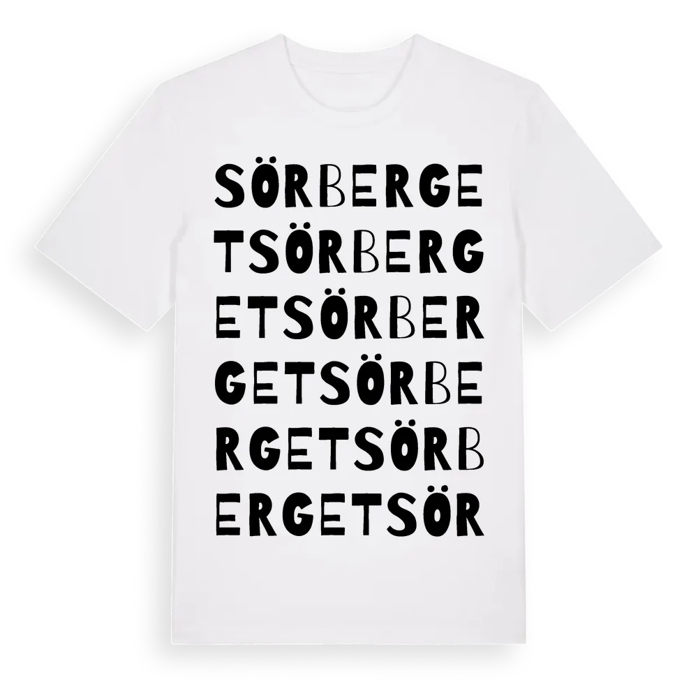 Sörberget ordlek t-shirt är inspirerad av byn Sörberget i Dalarnas län, Sverige. Tröjan är designad för dig som har en speciell koppling till platsen – oavsett om du bor här, har rötterna här eller bara älskar Sörberget.