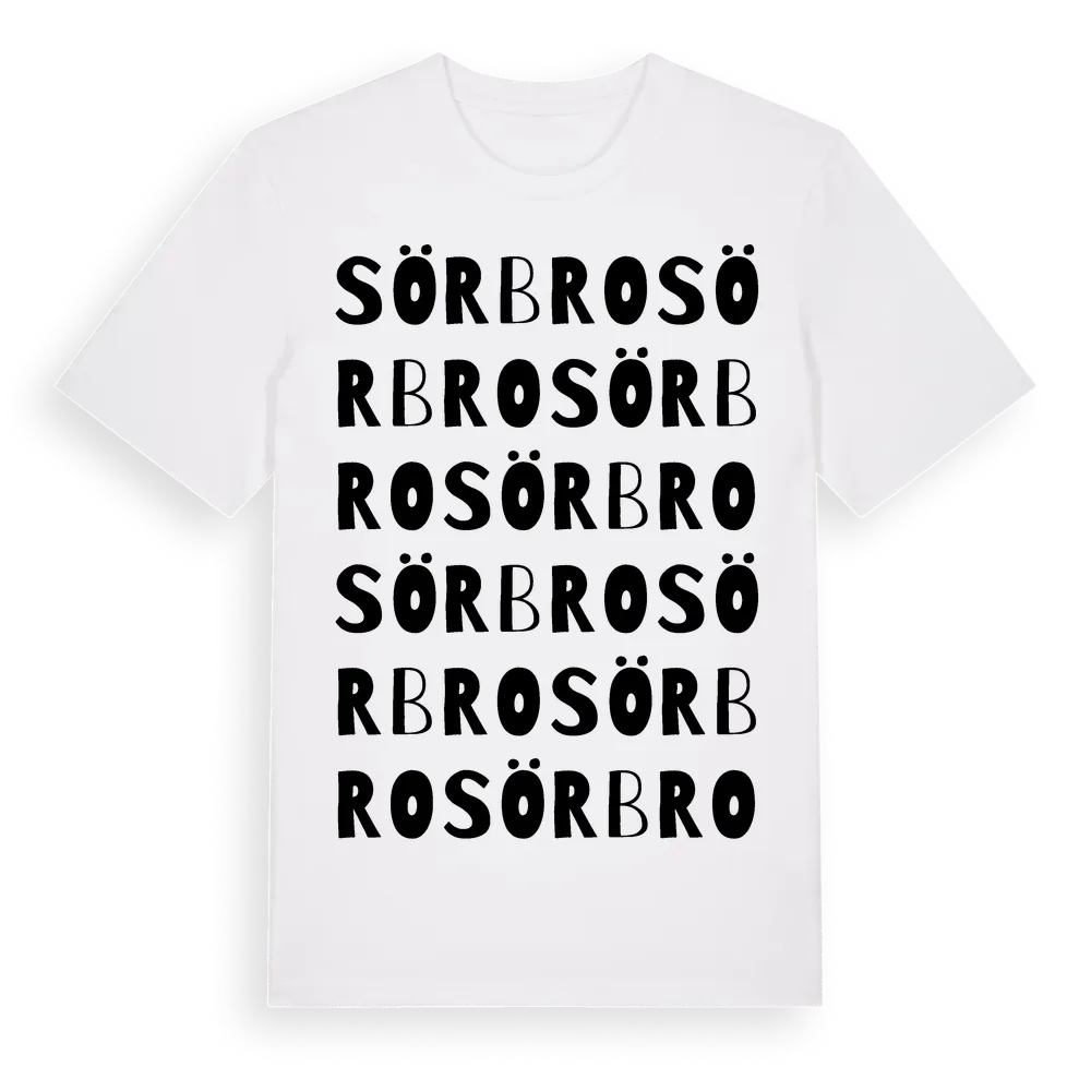 Sörbro ordlek t-shirt är inspirerad av byn Sörbro i Dalarnas län, Sverige. Tröjan är designad för dig som har en speciell koppling till platsen – oavsett om du bor här, har rötterna här eller bara älskar Sörbro.