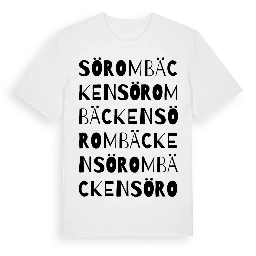 Sörombäcken ordlek t-shirt är inspirerad av byn Sörombäcken i Dalarnas län, Sverige. Tröjan är designad för dig som har en speciell koppling till platsen – oavsett om du bor här, har rötterna här eller bara älskar Sörombäcken.