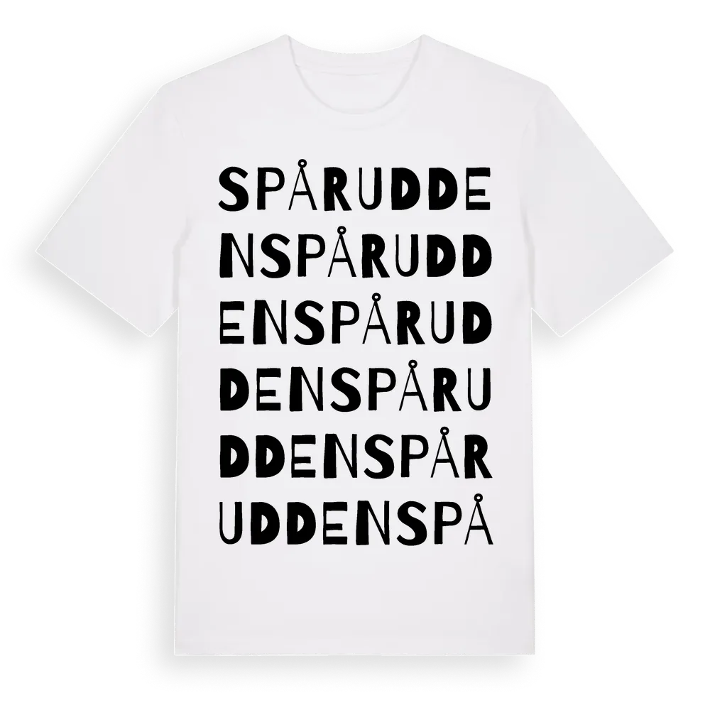 Spårudden ordlek t-shirt är inspirerad av Spårudden i Dalarnas län, Sverige. Tröjan är designad för dig som har en speciell koppling till platsen – oavsett om du bor här, har rötterna här eller bara älskar Spårudden.