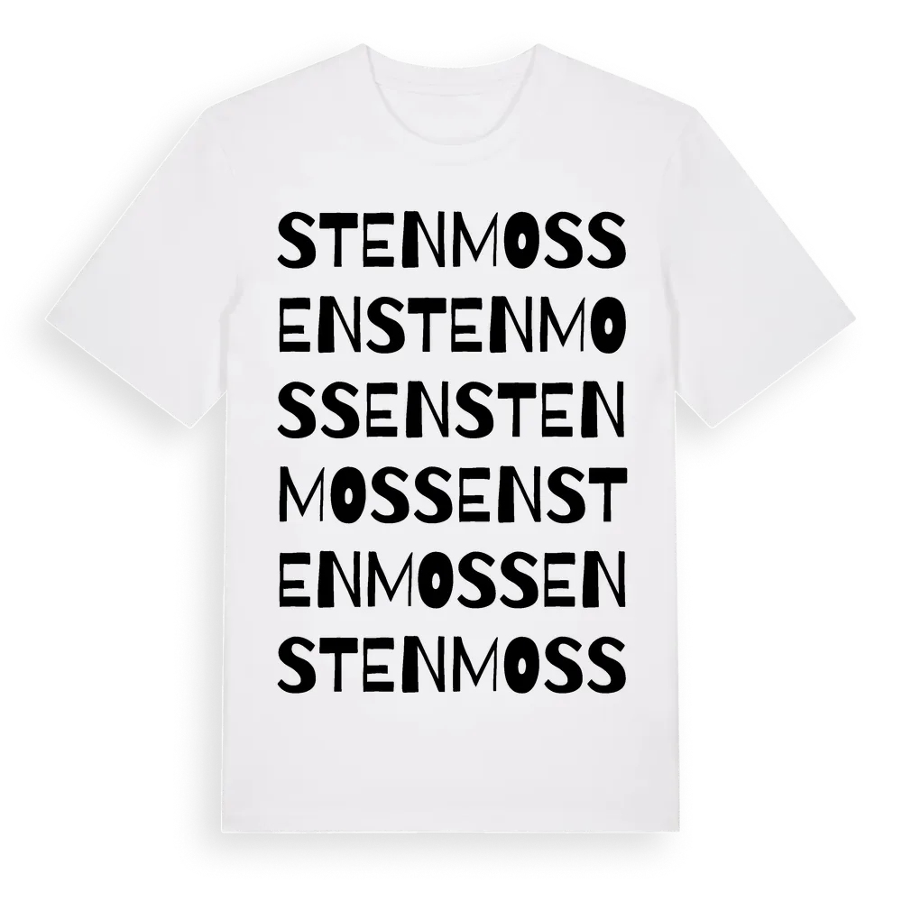 Stenmossen ordlek t-shirt är inspirerad av Stenmossen i Dalarnas län, Sverige. Tröjan är designad för dig som har en speciell koppling till platsen – oavsett om du bor här, har rötterna här eller bara älskar Stenmossen.
