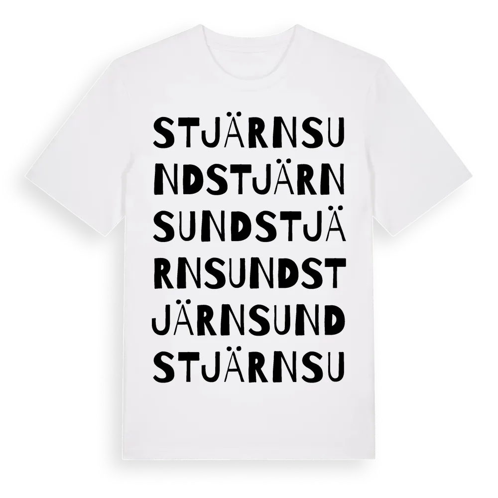 Stjärnsund ordlek t-shirt är inspirerad av byn Stjärnsund i Dalarnas län, Sverige. Tröjan är designad för dig som har en speciell koppling till platsen – oavsett om du bor här, har rötterna här eller bara älskar Stjärnsund.
