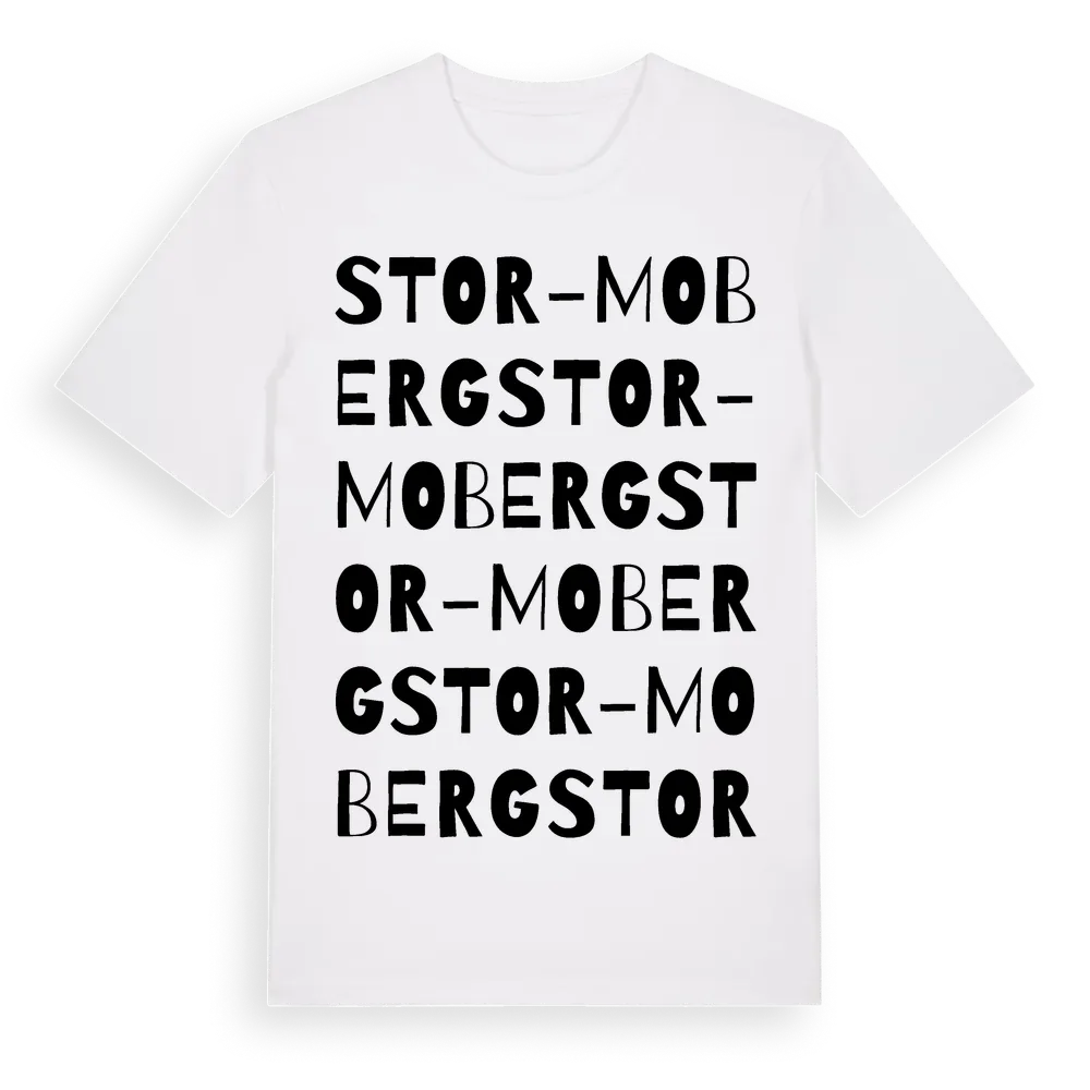 Stor-Moberg ordlek t-shirt är inspirerad av Stor-Moberg i Dalarnas län, Sverige. Tröjan är designad för dig som har en speciell koppling till platsen – oavsett om du bor här, har rötterna här eller bara älskar Stor-Moberg.