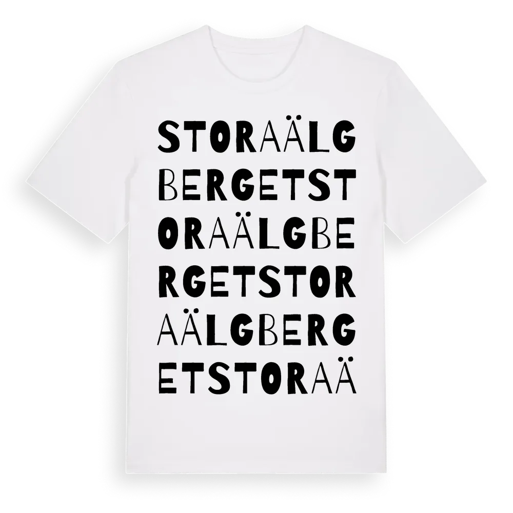 Stora Älgberget ordlek t-shirt är inspirerad av Stora Älgberget i Dalarnas län, Sverige. Tröjan är designad för dig som har en speciell koppling till platsen – oavsett om du bor här, har rötterna här eller bara älskar Stora Älgberget.