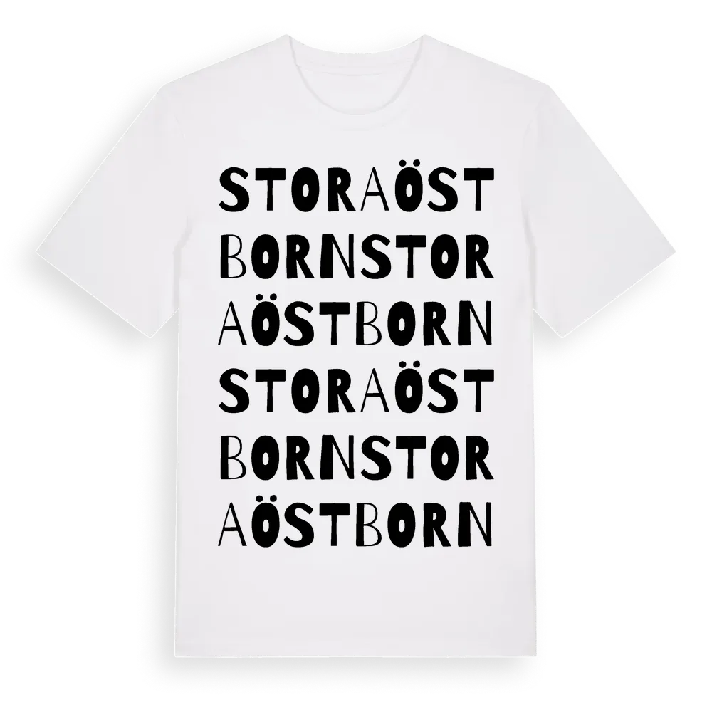 Stora Östborn ordlek t-shirt är inspirerad av Stora Östborn i Dalarnas län, Sverige. Tröjan är designad för dig som har en speciell koppling till platsen – oavsett om du bor här, har rötterna här eller bara älskar Stora Östborn.