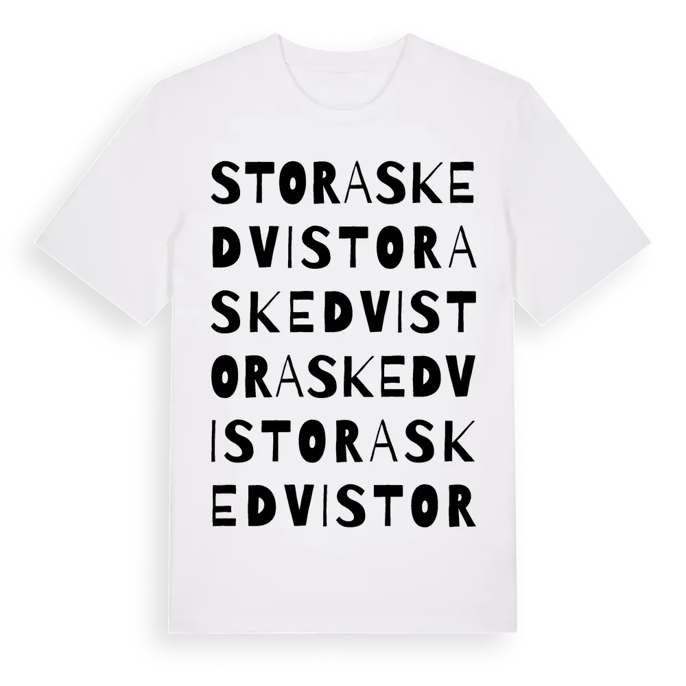Stora Skedvi ordlek t-shirt är inspirerad av Stora Skedvi i Dalarnas län, Sverige. Tröjan är designad för dig som har en speciell koppling till platsen – oavsett om du bor här, har rötterna här eller bara älskar Stora Skedvi.