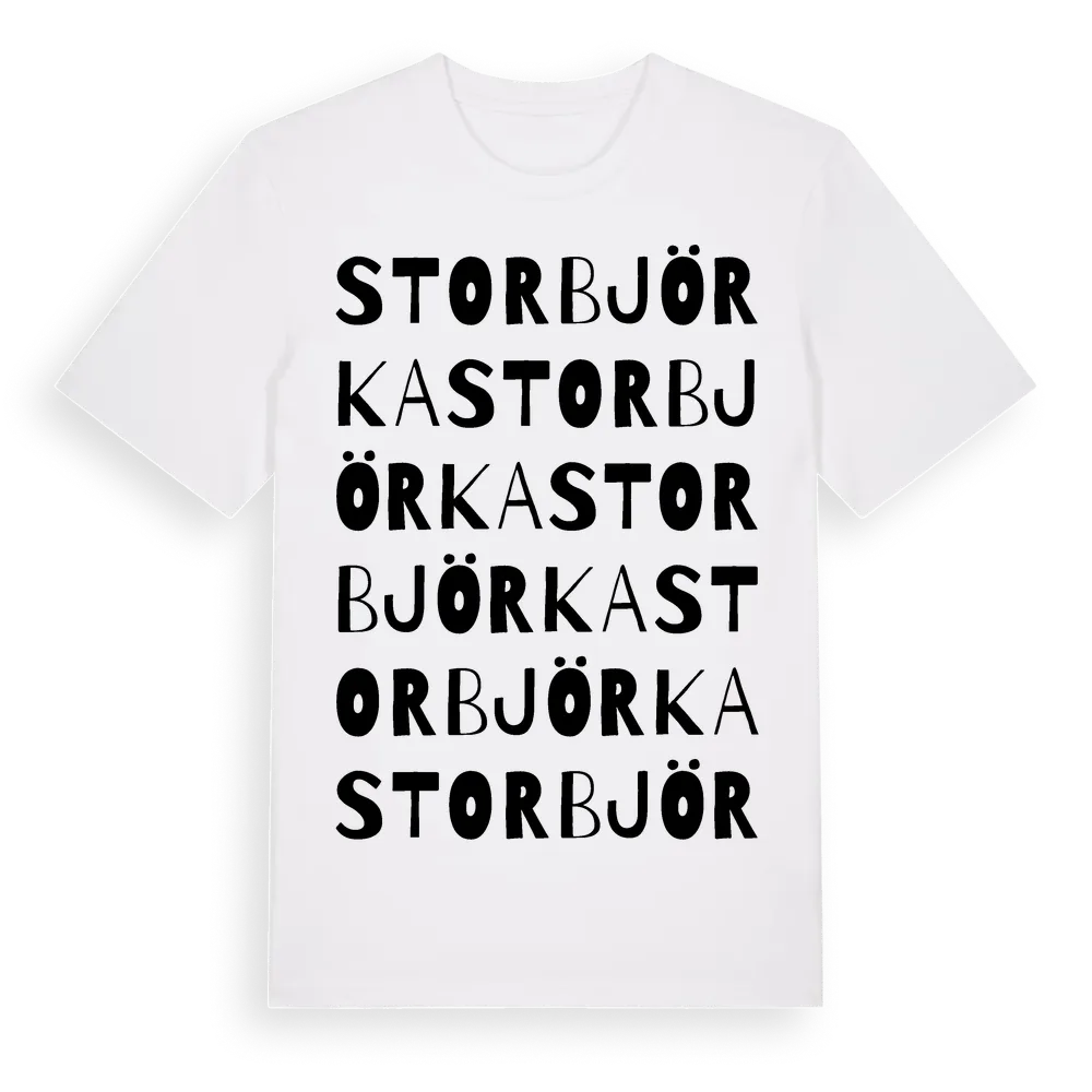 Storbjörka ordlek t-shirt är inspirerad av Storbjörka i Dalarnas län, Sverige. Tröjan är designad för dig som har en speciell koppling till platsen – oavsett om du bor här, har rötterna här eller bara älskar Storbjörka.