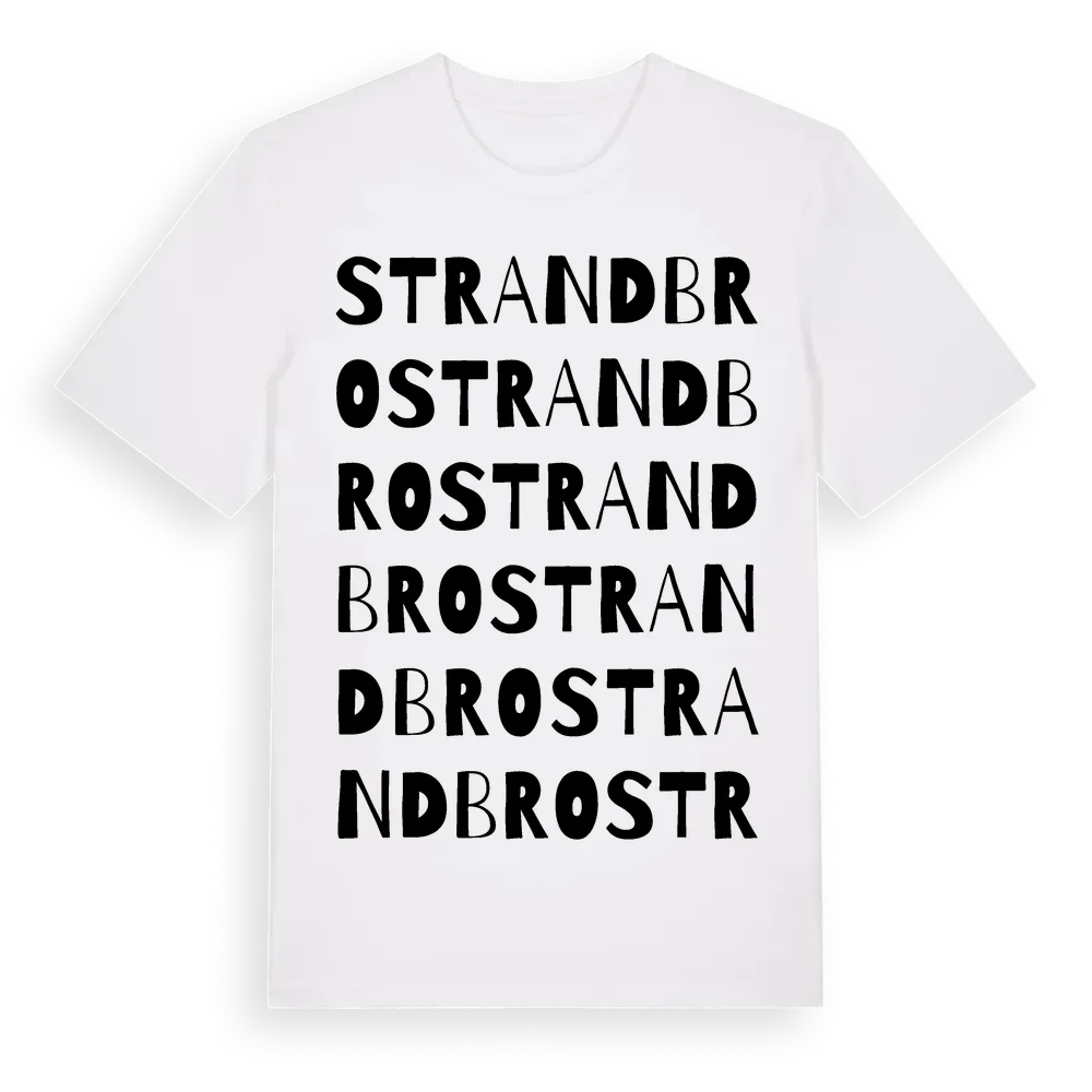 Strandbro ordlek t-shirt är inspirerad av byn Strandbro i Dalarnas län, Sverige. Tröjan är designad för dig som har en speciell koppling till platsen – oavsett om du bor här, har rötterna här eller bara älskar Strandbro.