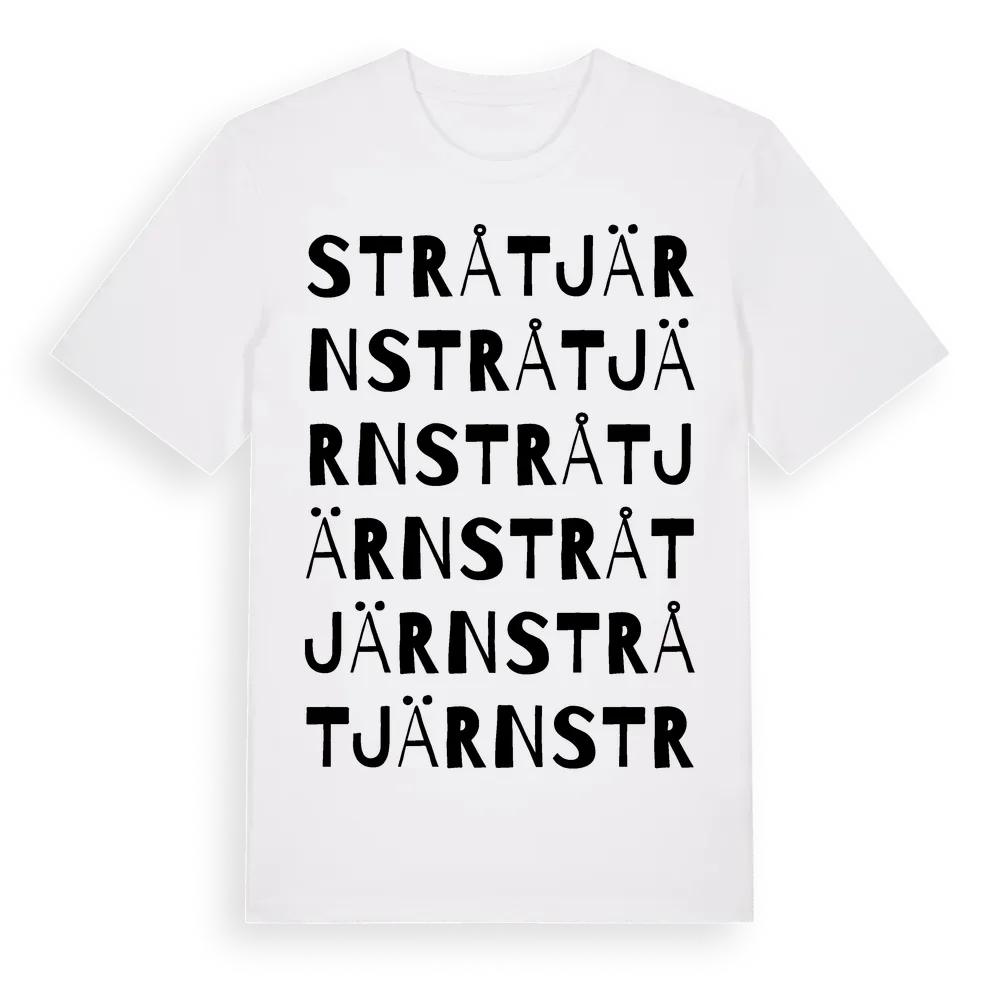 Stråtjärn ordlek t-shirt är inspirerad av byn Stråtjärn i Dalarnas län, Sverige. Tröjan är designad för dig som har en speciell koppling till platsen – oavsett om du bor här, har rötterna här eller bara älskar Stråtjärn.