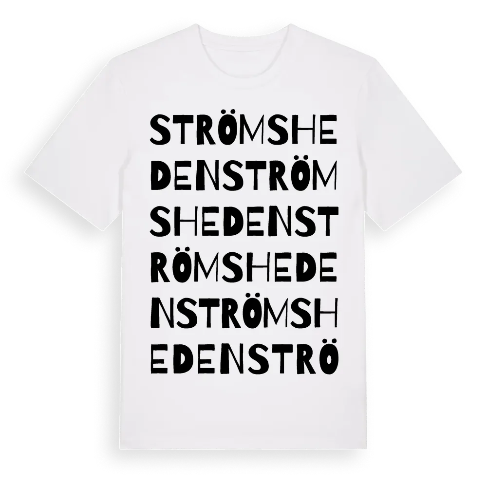 Strömsheden ordlek t-shirt är inspirerad av byn Strömsheden i Dalarnas län, Sverige. Tröjan är designad för dig som har en speciell koppling till platsen – oavsett om du bor här, har rötterna här eller bara älskar Strömsheden.