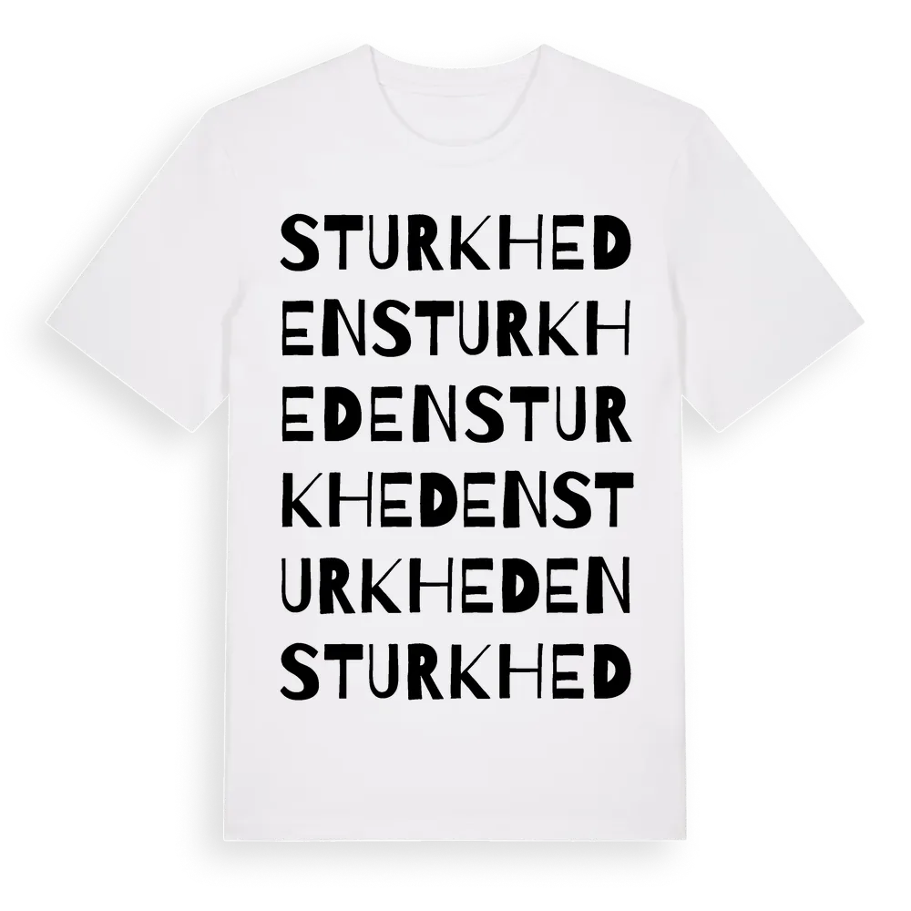 Sturkheden ordlek t-shirt är inspirerad av Sturkheden i Dalarnas län, Sverige. Tröjan är designad för dig som har en speciell koppling till platsen – oavsett om du bor här, har rötterna här eller bara älskar Sturkheden.