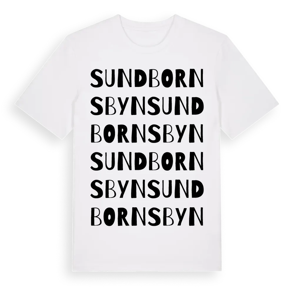 En ordlek byggd på Sundbornsbyns namn. Subtilt och klurig – ett motiv som bara de som verkligen känner platsen fullt ut förstår. Premium bomull, unisex – från stadsdelen Sundbornsbyn i Dalarnas län.