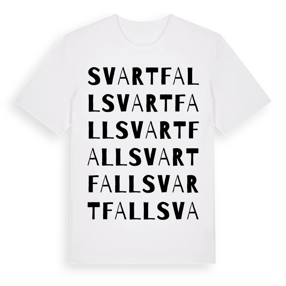 Svartfall ordlek t-shirt är inspirerad av Svartfall i Dalarnas län, Sverige. Tröjan är designad för dig som har en speciell koppling till platsen – oavsett om du bor här, har rötterna här eller bara älskar Svartfall.