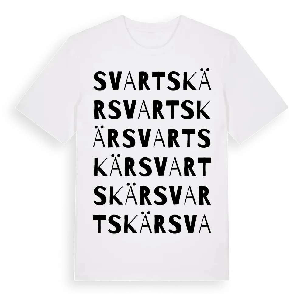 Svartskär ordlek t-shirt är inspirerad av byn Svartskär i Dalarnas län, Sverige. Tröjan är designad för dig som har en speciell koppling till platsen – oavsett om du bor här, har rötterna här eller bara älskar Svartskär.