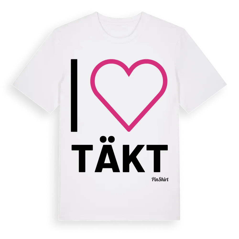 Det klassiska "I ❤ Täkt"-motivet i stort format som täcker hela bröstet. För dig som vill visa kärleken till Täkt på riktigt. Premium bomull, unisex – från byn Täkt i Dalarnas län.