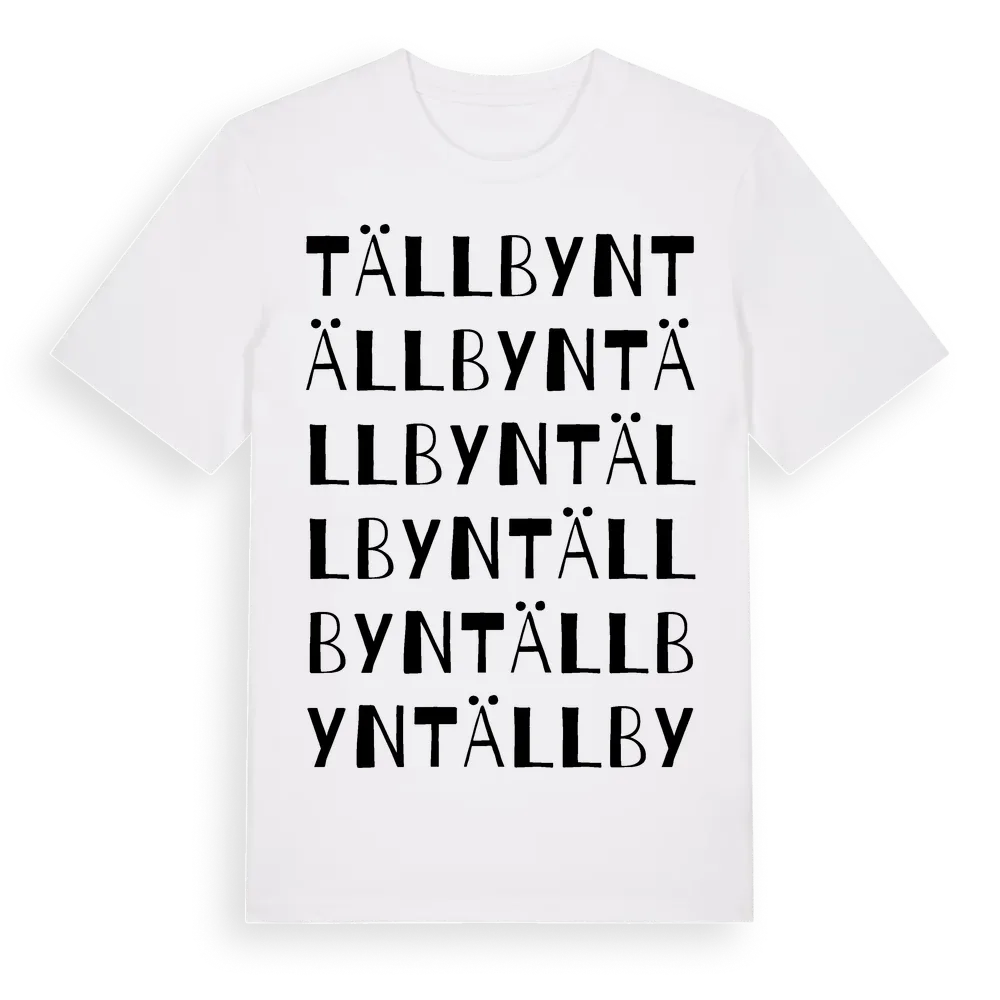Tällbyn ordlek t-shirt är inspirerad av stadsdelen Tällbyn i Dalarnas län, Sverige. Tröjan är designad för dig som har en speciell koppling till platsen – oavsett om du bor här, har rötterna här eller bara älskar Tällbyn.