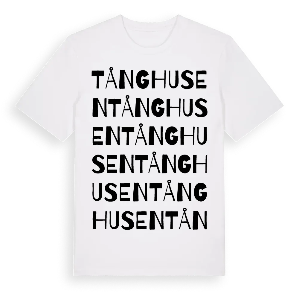 Tånghusen ordlek t-shirt är inspirerad av Tånghusen i Dalarnas län, Sverige. Tröjan är designad för dig som har en speciell koppling till platsen – oavsett om du bor här, har rötterna här eller bara älskar Tånghusen.